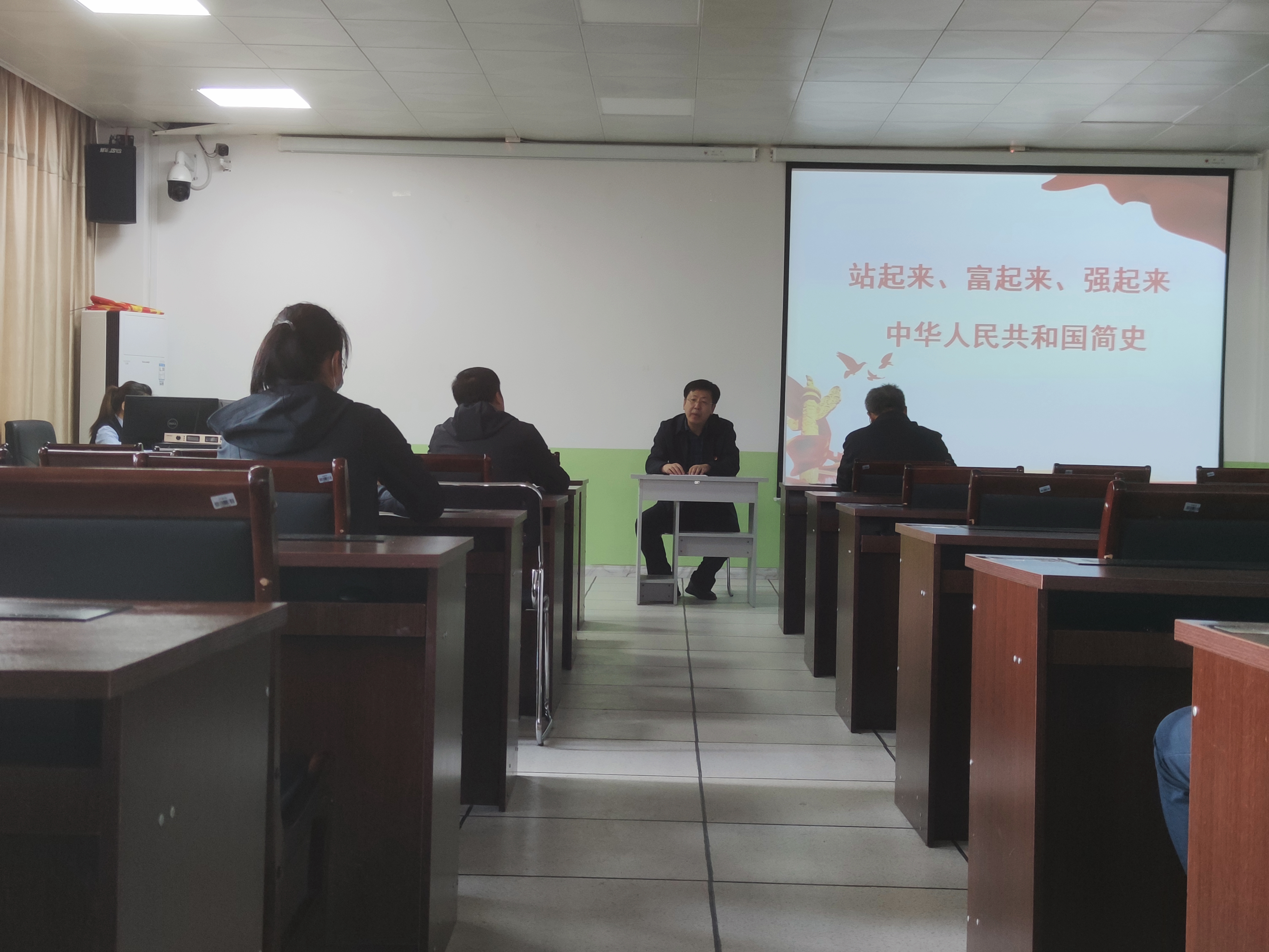 在这次活动中,党总支书记刘锡权以“站起来、富起来、强起来”为主题,给大家上了一堂党课,和大家一起学习了新中国史。在讲解中,刘锡权从新中国成立和社会主义制度的确立、社会主义建设的艰辛探索和曲折发展、改革开放与中国特色社会主义的开创、建立社会主义市场经济体制和把中国特色社会主义全面推向21世纪、全面建设小康社会与新的形势下坚持和发展中国特色社会主义、中国特色社会主义进入新时代和实现中华民族伟大复兴的中国梦、决胜全面建成小康社会和开启全面建成社会主义现代化强国新征程等七个阶段和大家一同回顾了那段波澜壮阔的历史,使全体党员对新中国成立以来,中国共产党带领全国各族人民为实现中华民族伟大复兴取得的丰功伟绩有了更全面和深刻的认识。