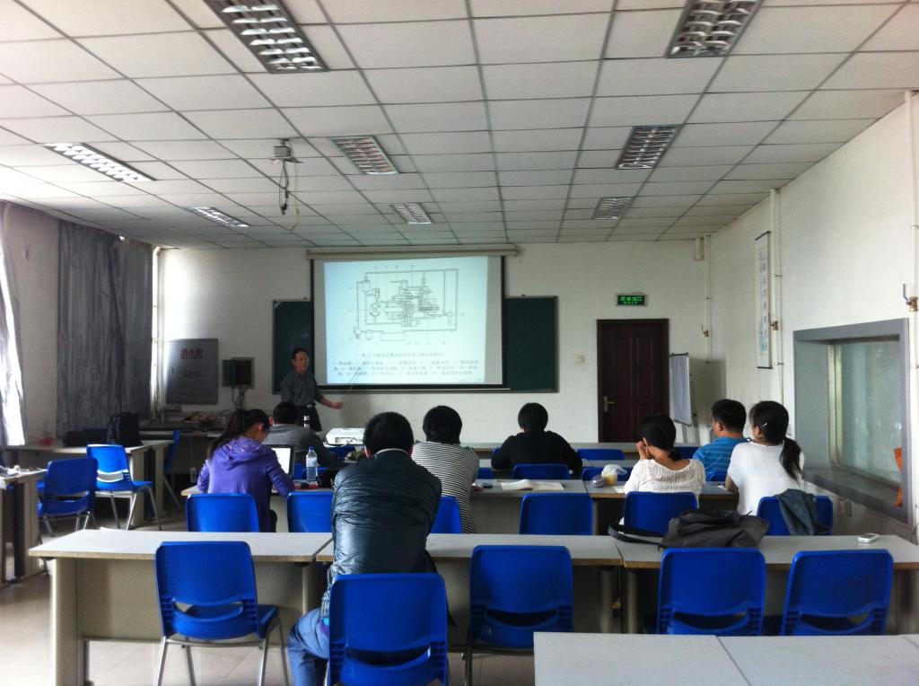 卢圣春副教授利用自己制作的课件对柴油机的结构、原理进行了详细的讲解,课程中还讲解了电控柴油机的机构及控制原理等内容。