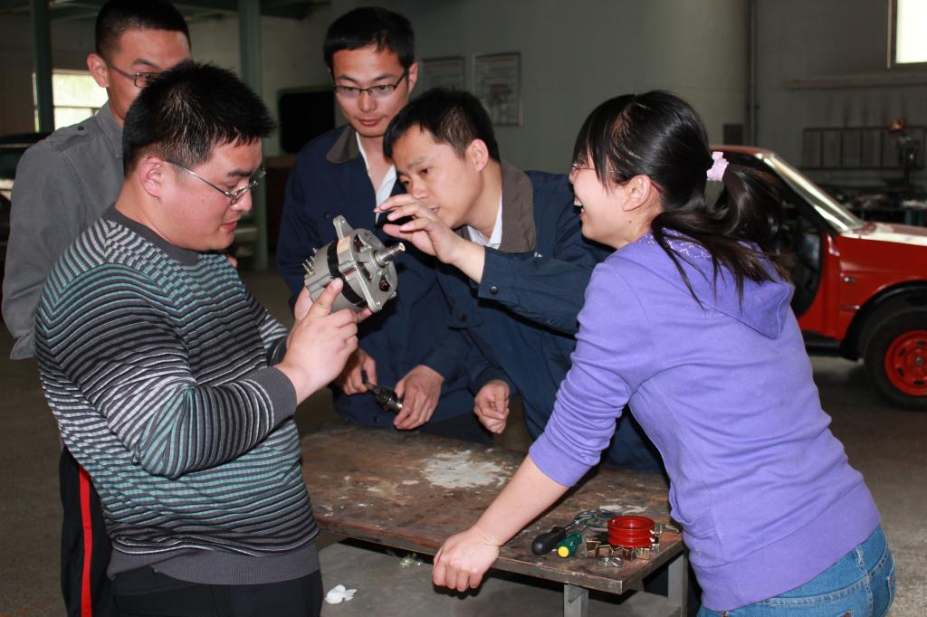 孙志刚副教授主要讲解了蓄电池、发电机和起动机的结构、原理、维护保养及常见故障诊断与维修。在培训过程中采取小组讨论、教师授课、自主学习、实践操作等多种教学模式,以工作页为载体,充分展示了“教学做”一体化课程的教学组织过程,让青年教师真正体验了什么是“教学做”一体化的教学组织。学员们分三组进行学习,在实训的过程中,学员们对发电机和起动机进行了分解和维修,在培训结束后进行了装车测试,都通过了考核。