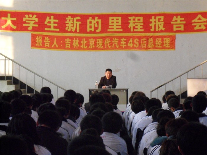 大学是人生新的驿站,在这里开始大学生们走向社会的新里程。为了让同学们更好的完成大学的学习、生活,更好的认识企业,使自己成为一名企业需要的人才,我系特地请来吉林现代汽车4S店宗国静总经理来我系,给同学们做新的里程报告。