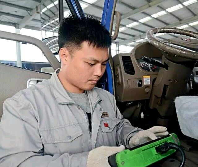 他进厂的时候是2010年9月份,正是轻卡销售的旺季,生产任务重,白天黑夜加班,经过同事的帮助和自我的快速学习和适应,他的车辆调试技能稳步提升。