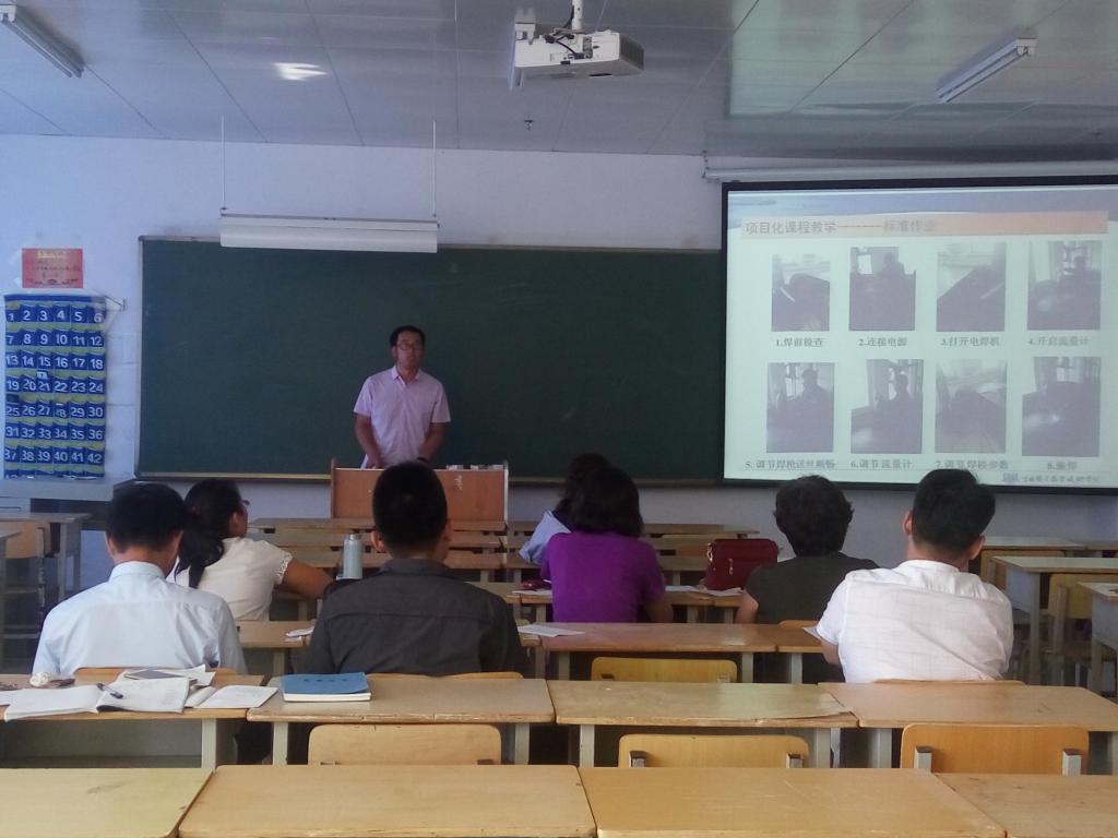 参加本次试讲的教师有:谢俊清、邹慧、王剑、张远健、于丰博。经过一个假期的教学准备,每位教师都将自己上课的想法和设计在试讲中进行了展现,谢俊清老师讲授的《工程机械驾驶与操作》课程,自制课件融合了虚拟仿真、3D动画、模拟操作等先进的信息化手段,能够更好的让学生参与课堂教学;邹慧老师也采用了一些信息化手段,将所讲授课程创建了微信公众平台,学生可以在平台中进行学习、互动、答疑和测试等,能够有效的调动学生的积极性;张远健老师将自己在一汽吉林汽车有限公司参与企业生产的一些视频和图片,按照生产工序与讲授课程进行了融合,能够确保学生的学习内容更加贴近实际工作;王剑老师将自己的课程按照生产工艺流程进行了设计,设计了任务单和指导书等教学载体,能够确保学生按照规范的生产工艺进行作业;于丰博老师结合自己在铁路局的工作,在课程中引入了各种工作案例和图片,能够让课程内容更加真实生动。