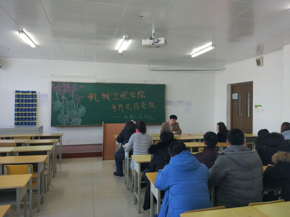 2017年12月27日,机械工程学院全体教职工在教学楼7楼教室,召开年度总结大会。