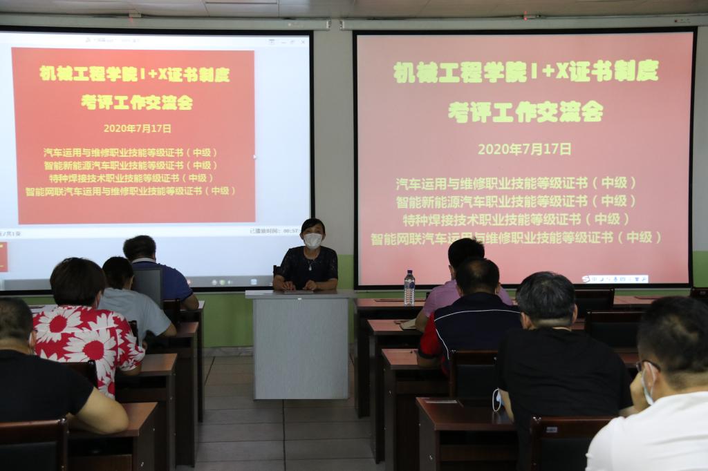 7月17日,为了进一步开展好1+X证书制度试点工作,机械工程学院在四号实训楼301室召开1+X证书制度考评工作交流会,副校长张辉、机械工程学院院长孙志刚、副院长董大伟和全体专任教师参加了会议。
