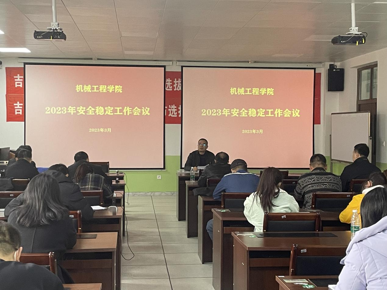 为贯彻落实学校相关工作要求,全面做好安全稳定工作,3月7日,机械工程学院召开了2023年安全稳定工作会议。会议由党总支书记孙志刚主持,院长董大伟及学院全体教师参加。