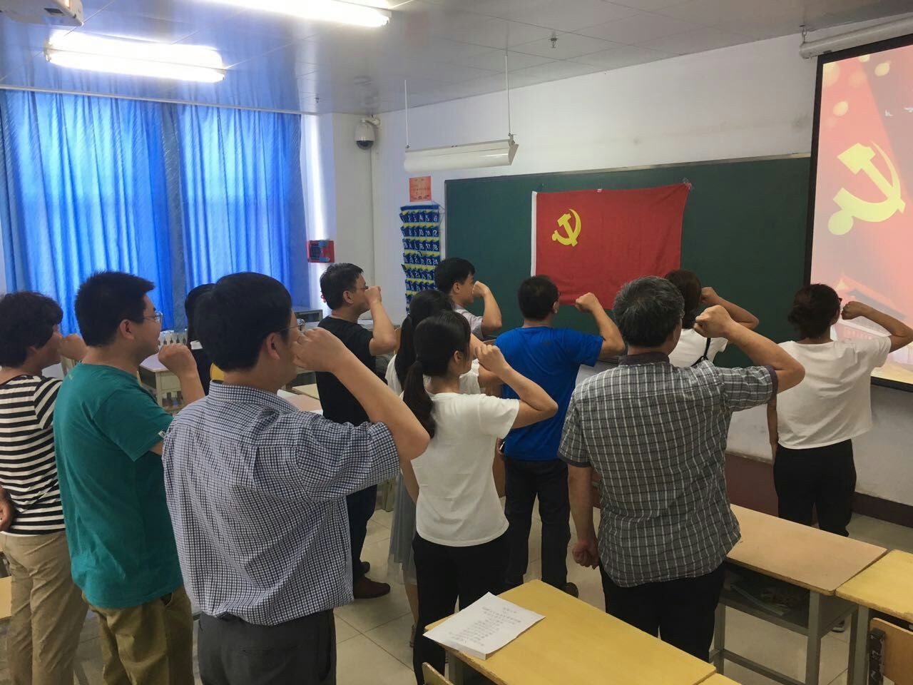 最后全体党员一同在青年教师邹慧的带领下,重温了入党誓词。