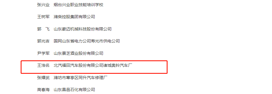 毕业后,王浩名到北汽福田汽车股份有限公司诸城奥铃汽车厂工作。在工作期间,他爱岗敬业、刻苦专研、精益求精,不断在工作中、各种大赛中获得各种荣誉表彰。由于其出色的工作表现,2015年被全国总工会授予“全国五一劳动奖章”,2017年被人力资源和社会保障部授予“全国技术能手荣誉称号”。2018年12月,经逐级推荐、选拔,山东省人才工作领导小组研究同意,山东省政府批准,王浩名同志被评为齐鲁首席技师。