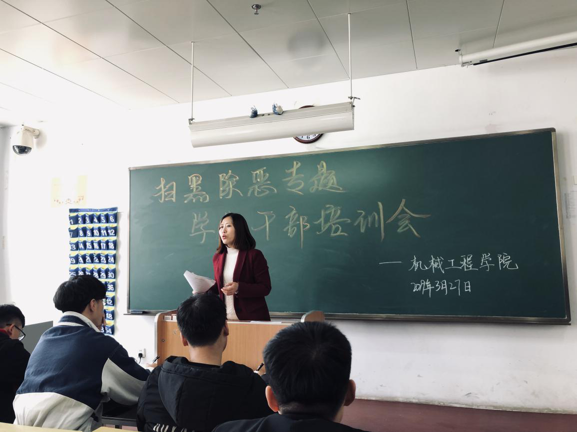 为认真贯彻中共中央、国务院《关于开展扫黑除恶专项斗争的通知》的精神,更好的落实《吉林铁道职业技术学院扫黑除恶专项斗争工作方案》,机械工程分院于3月27下午在教学楼707召开了针对学生干部的黑除恶专项斗争的宣传、学习培训会。机械工程分院全体学生会、团委副部以上学生干部,大一、大二、大三全体班长、团支书参加了会议。