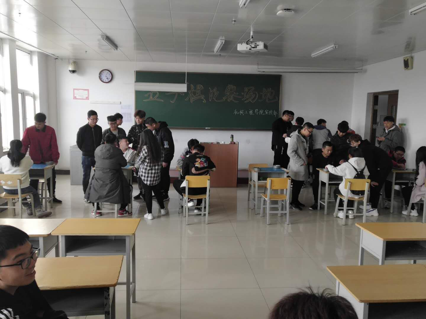 以“棋”会友,可以是最简单常见的五子棋,也可以是耗时较长的象棋,比赛中他们紧皱眉头的思考,信心满满,心中有打败对手的决心,每一步棋都决定着获胜与失败的关键。