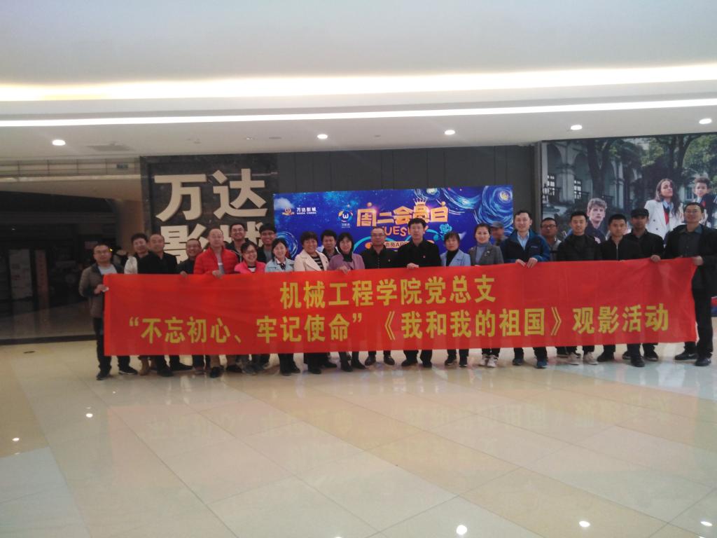 为庆祝中华人民共和国成立70周年,扎实开展“不忘初心、牢记使命”主题教育活动,10月16日下午13:00,机械工程学院党总支组织全体教师观看了国庆献礼影片《我和我的祖国》。通过这次观影活动,将主题教育活动融入每个教师的内心,提升党员干部的凝聚力战斗力,从而激励广大教师为祖国的繁荣昌盛、中华民族伟大复兴而努力奋斗。